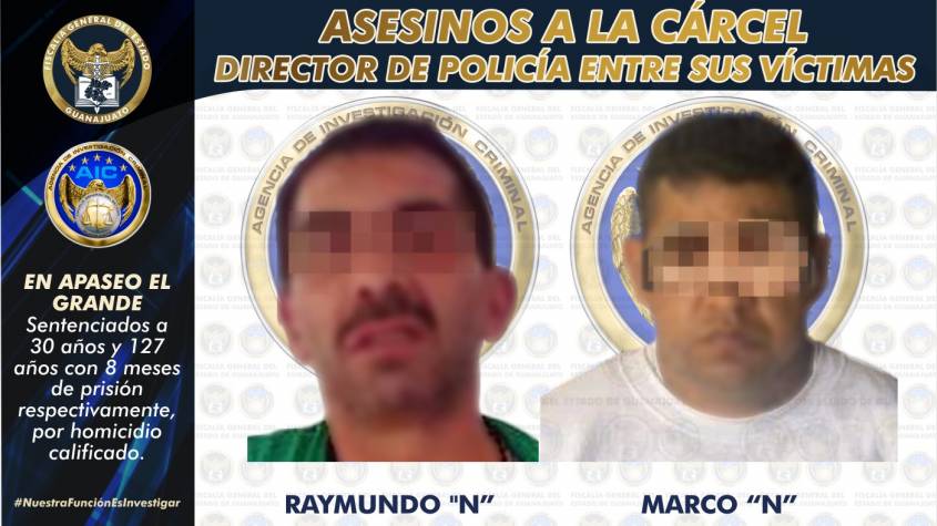 La Fiscalía General del Estado obtuvo una sentencia inédita de 127 años con 8 meses para un sujeto identificado como Marco Antonio “N”, alias “El Chitos”, responsable de asesinar al director de Seguridad Pública en Apaseo el Grande, J. Jesús “N”, en La colonia La Huerta, y del atroz crimen de tres adolescentes, dos mujeres y un hombre, a quienes torturó y enterró en unos corrales en el patio de un inmueble ubicado en la comunidad de San Pedro Tenango, en los meses de mayo y junio de 2017.