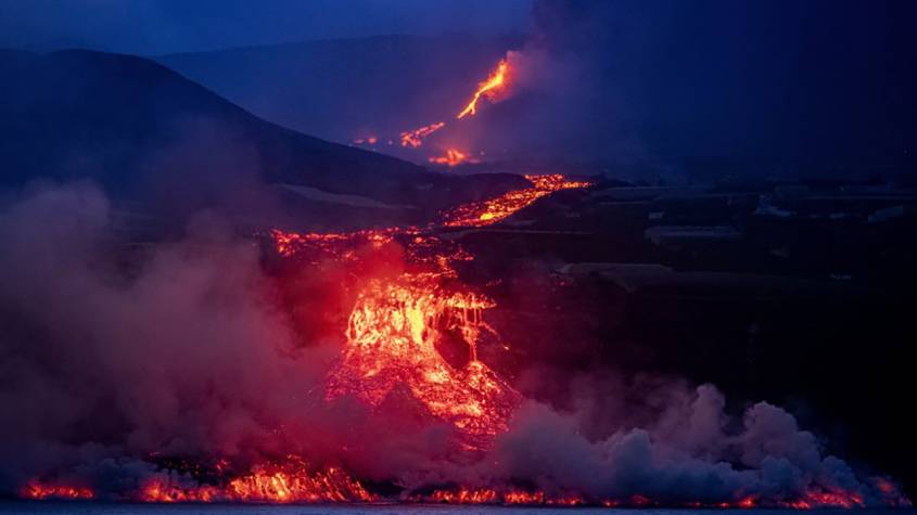 Durante la noche se ha dado la llegada de la lava del volcán de la Palma, en las Islas Canarias, después de 10 días de intensa actividad volcánica en la isla, esto ha obligado a mucha gente a dejar su hogar y perder muchas bienes materiales.