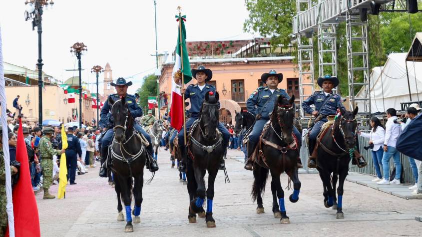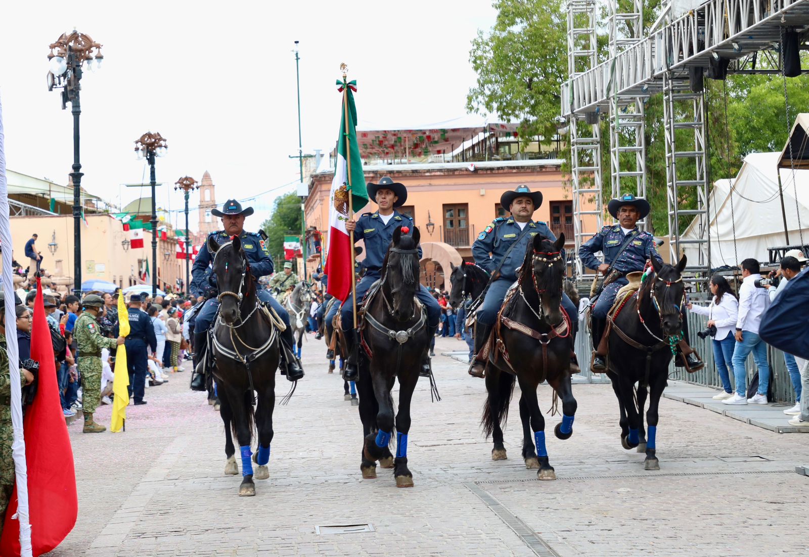 El desfile inició en el Monumento a la Bandera y recorrió la zona centro de la ciudad. Participaron más de 2 mil 300 personas entre estudiantes, escoltas, bandas de guerra, cuerpos de seguridad, Ejército Mexicano, Guardia Nacional, Protección Civil, Bomberos, Cruz Roja y agrupaciones de charros.