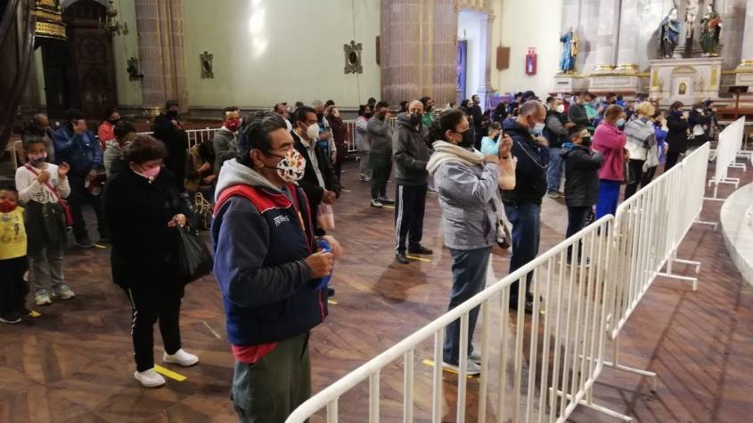 En su visita, los peregrinos tienen que cumplir con las medidas sanitarias impuestas por las autoridades municipales y eclesiásticas como es el uso de cubrebocas, solo permanecer en la basílica por 10 minutos y aplicar gel antibacterial.