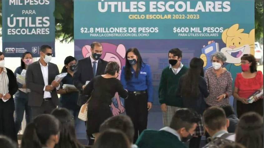 El municipio de León realizó la entrega de 4 mil 175 kits de útiles escolares para alumnos de educación básica de la escuela secundaria general no.22 en donde se hizo la entrega simbólica de útiles, todo esto de cara para el próximo ciclo escolar 2022-2023.
