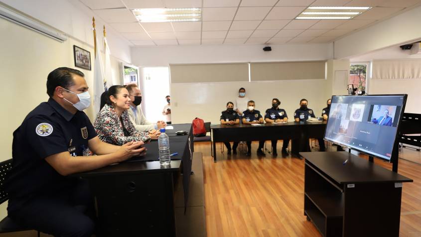 La Presidenta Municipal, Ale Gutiérrez, visitó las instalaciones de la Academia Metropolitana de Seguridad Pública de León y estuvo presente en la segunda y última sesión de la Auditoría de la Comisión de Acreditación de Agencias de Aplicación de la Ley (CALEA), proceso necesario para lograr la recertificación.