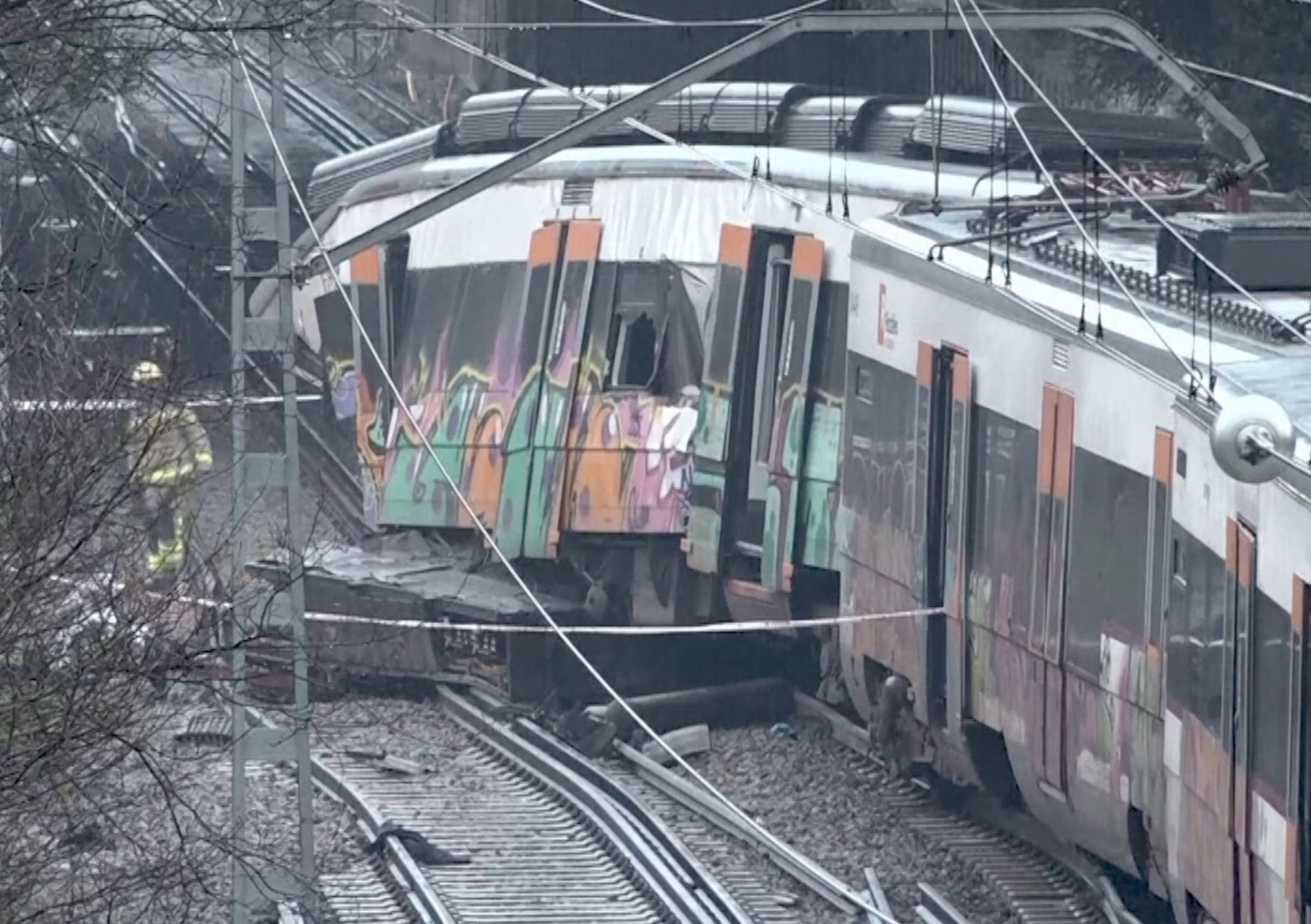 De acuerdo con Protección Civil de Cataluña, el colapso de la estructura provocó el choque del convoy contra los escombros y su descarrilamiento parcial, lo que activó de inmediato un amplio operativo de emergencia para atender a los pasajeros y asegurar la zona.