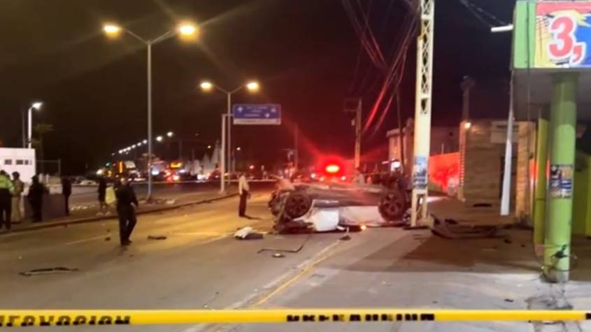 La Secretaría de Seguridad Pública municipal informó que, según testigos, una camioneta blanca que circulaba a exceso de velocidad impactó a una motocicleta en la que viajaba una pareja. Tras el choque, la camioneta perdió el control, derribó una jardinera y volcó en el carril contrario.