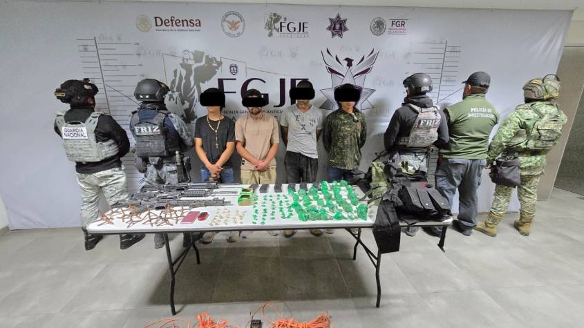 Como resultado, fueron detenidos cuatro hombres identificados como Alberto N., de 47 años; Claudio N., de 18 años; Juan Carrera N., de 21 años, y Flavio Alberto N., de 38 años. Este último fue señalado como jefe de plaza de una célula criminal que operaba en el municipio de Tabasco.