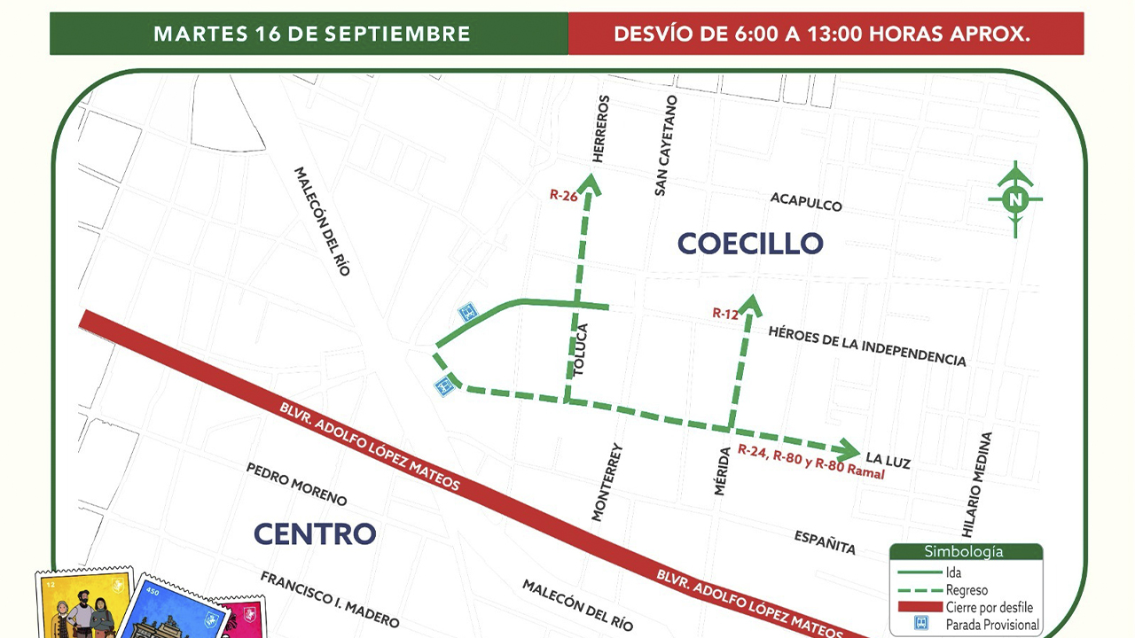 Con motivo del Desfile Conmemorativo por el Aniversario de la Independencia de México, el Gobierno Municipal anunció ajustes temporales en el transporte público.