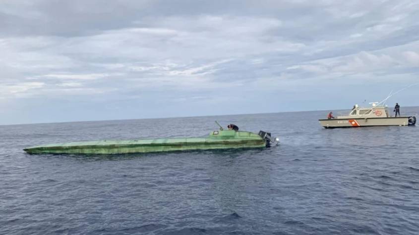 El vehículo —diseñado para pasar desapercibido en el océano— fue localizado durante un patrullaje de rutina con apoyo aéreo y marítimo. A bordo se encontraban tres tripulantes y 180 bultos cargados con la droga.