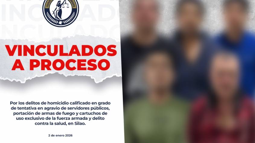 Tras una agresión con armas de fuego contra agentes de Investigación Criminal en el municipio de Silao, CRISTIAN “N”, LAMBERTO “N”, WILLIAM ALEXIS “N”, ANTONIO “N” y ADWING ISAÍ “N” fueron vinculados a proceso, luego de que el Ministerio Público acreditó su probable responsabilidad en los delitos de homicidio calificado en grado de tentativa en agravio de servidores públicos, así como por posesión de armas de fuego de uso exclusivo del Ejército y delitos contra la salud.