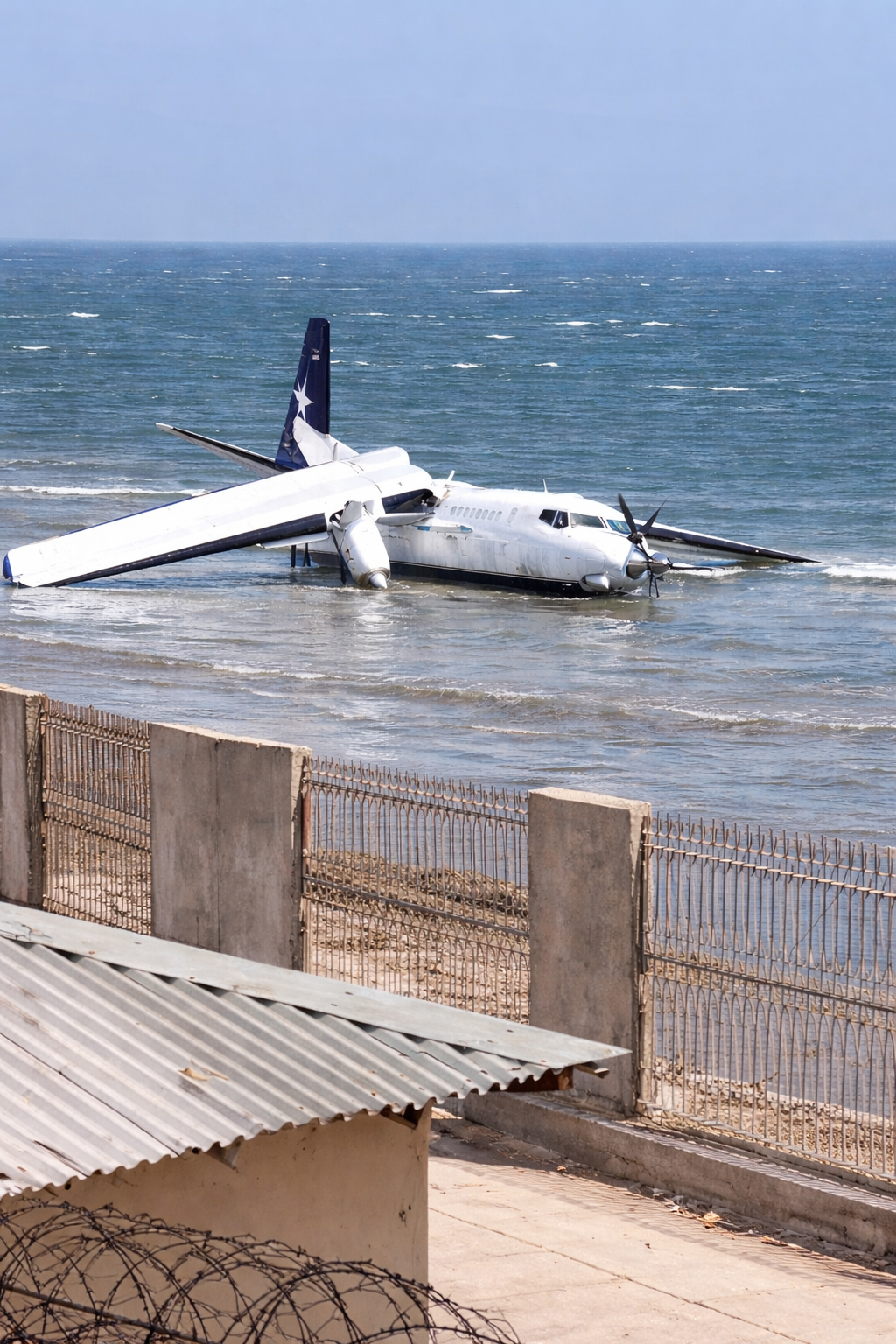 Mogadiscio, Somalia. Un avión de pasajeros sufrió un accidente este martes y terminó varado en una playa cercana a la capital somalí, Mogadiscio, poco después de despegar del Aeropuerto Internacional Aden Adde, sin que se registraran personas fallecidas ni lesionadas.