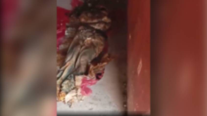 Además, se puede apreciar el cuerpo completo de una persona sin especificar el género, junto con una bolsa de plástico roja que ya ha sido retirada del lugar donde fue encontrado.