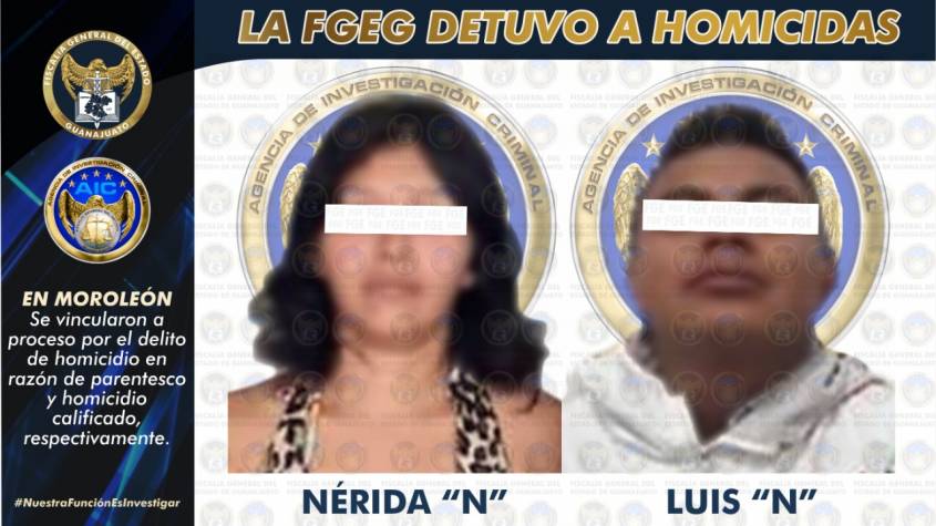 La mujer de 30 años, identificada como NERIDA “N” y LUIS “N”, de 21 años, fueron detenidos este 15 de septiembre por agentes de Investigación Criminal, quienes les mostraron orden de aprehensión al llegar a su domicilio en la calle Paseo de Palo Dulce en el Fraccionamiento Rinconada del Bosque en Moroleón.