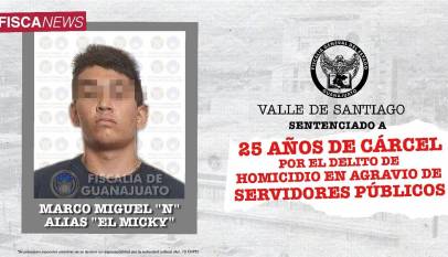La Fiscalía de Guanajuato demostró ante un Juez la responsabilidad de MARCO MIGUEL “N”, alias “El Micky”, en el asesinato de una mujer policía, registrado el 25 de septiembre de 2022, en Valle de Santiago. El Juez lo sentenció a 25 años de cárcel.Los hechos acontecieron aproximadamente a las 15:30…