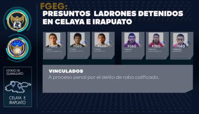 La Fiscalía General del Estado obtuvo vinculación a proceso penal de seis hombres, acusados por el delito de robo a una gasolinera en Celaya, en donde despojaron de dinero en efectivo a los encargados y a un particular en Irapuato, a quien robaron su motocicleta, en ambos casos los acusados…