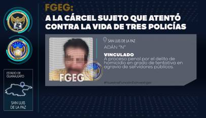 En un intento por librarse de ser detenido, ADÁN “N” se atrincheró en la azotea de una casa y con una arma larga agredió y lesionó a elementos preventivos durante una persecución en San Luis de la Paz. El inculpado fue detenido y puesto a disposición de la Fiscalía General…