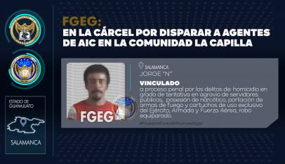 La Fiscalía General del Estado de Guanajuato vinculó a proceso penal a JORGE “N”, quien permanecerá en prisión preventiva como medida cautelar en espera de su sentencia. Alrededor de las 15:00 horas, del pasado miércoles Agentes de la AIC, se encontraban efectuando labores de investigación en la ciudad de…