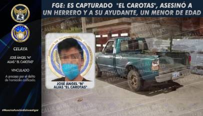 En seguimiento a la investigación para esclarecer el asesinato de José “N” quien era herrero de oficio, y de un menor de 16 años de edad que trabajaba con él, la Fiscalía General del Estado capturó a JOSÉ ÁNGEL “N” alias “El Carotas”, quien ya se encuentra en la cárcel…