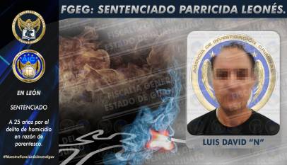 En juicio de procedimiento abreviado en León, un hombre fue sentenciado a 25 años en la cárcel, al ser hallado culpable en el delito de homicidio en razón de parentesco. LUIS DAVID “N”, de 45 años, lesionó mortalmente a su padre en los primeros minutos del año 2021. El anciano…