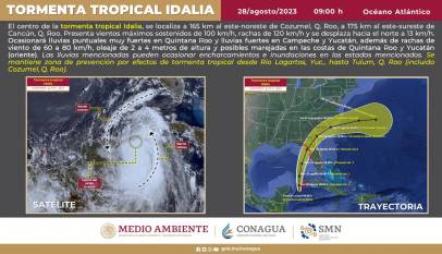 Hoy, el centro del ciclón tropical «Idalia» se ubicará frente a las costas de Quintana Roo. Las bandas de nubes asociadas a este sistema están causando lluvias intensas en áreas específicas de Quintana Roo, mientras que en Yucatán se esperan lluvias muy fuertes, y en Campeche se prevén lluvias de…