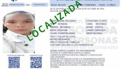 El Municipio de León anunció este sábado, a través de sus canales de difusión de WhatsApp, que Dara Esmeralda Romo Bustamante, de 12 años, ha sido localizada. La menor había sido reportada como desaparecida desde la mañana del 3 de octubre, lo que activó los protocolos de búsqueda a través…