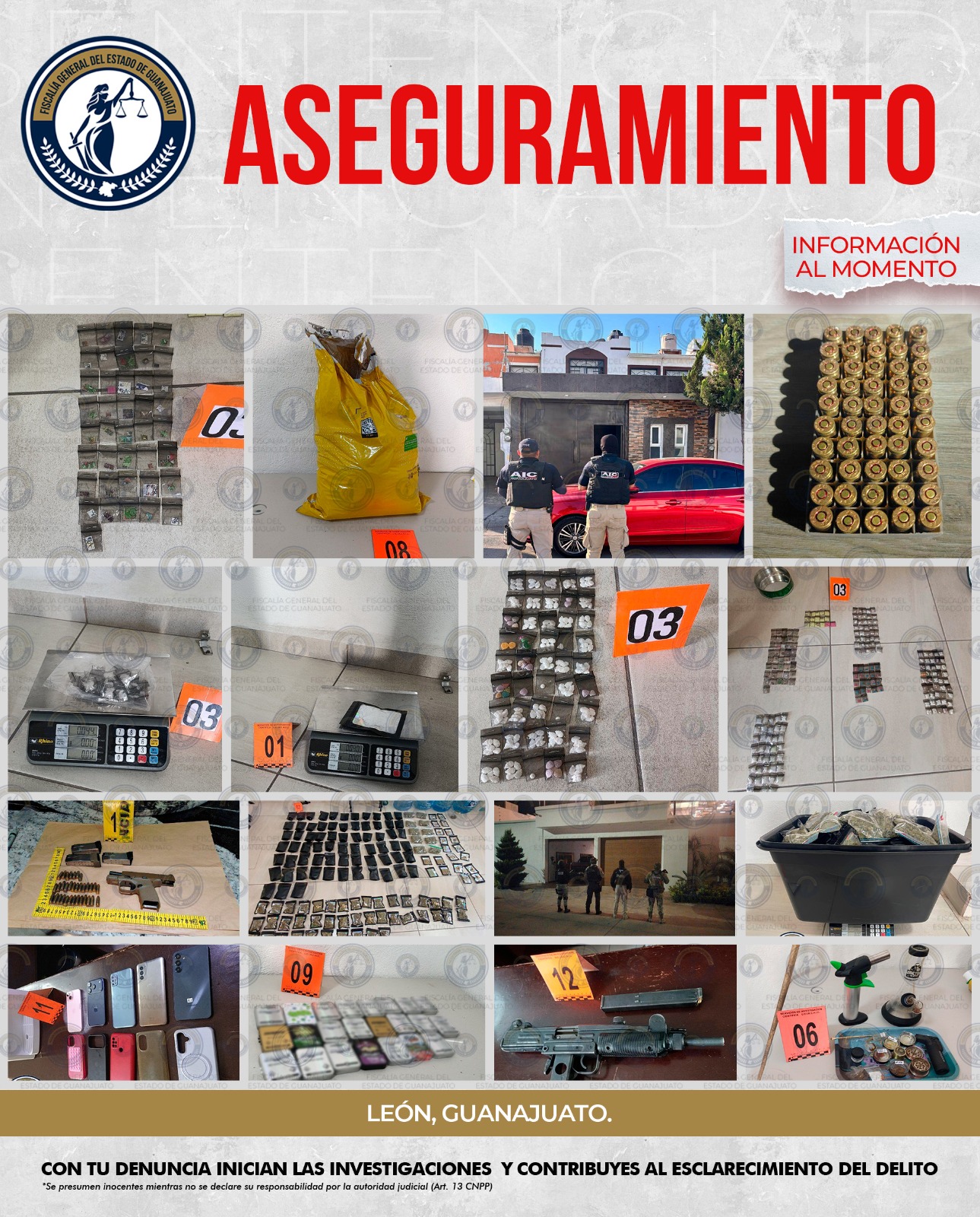 Cateos en León dejan seis detenidos y decomiso de armas y drogas.