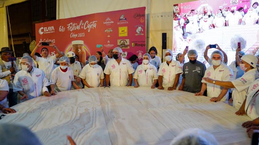 Este logro se llevó a cabo durante el Festival de la Cajeta, un evento gastronómico respaldado por la Secretaría de Turismo del Estado de Guanajuato, a través de la Dirección de Productos Turísticos. Un total de 83 expertos cajeteros de 18 fábricas de Celaya trabajaron arduamente durante 14 horas continuas para preparar esta delicia, que fue colocada en un cajete de 3 metros de diámetro.