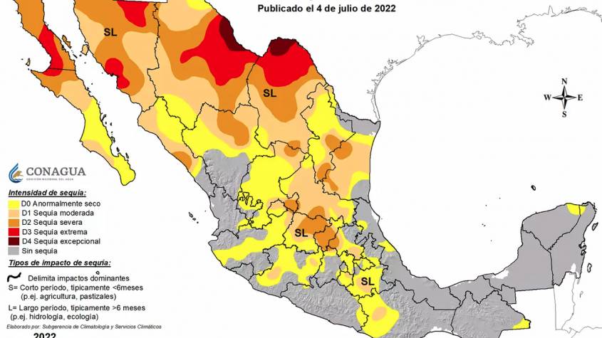 El último reporte de la Conagua, deja ver que ya hay sequía excepcional en estados como Sonora, Chihuahua, Coahuila y la península de Baja California, aunque también están empezando a presentarse en varias zonas del centro y el bajío.