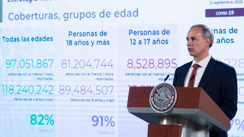 En conferencia de prensa matutina con el presidente Andrés Manuel López Obrador, el subsecretario dio a conocer que, al 13 de septiembre, la cobertura de vacunación es de 82 por ciento en personas de todas las edades; 91 por ciento en adultos de 18 años y más, y 64 por ciento en adolescentes de 12 a 17 años.