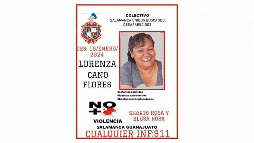 «Lorenza Cano, parte del colectivo Salamanca Unidos Buscando Desaparecidos Guanajuato, fue privada de su libertad por hombres armados. Su esposo e hijo perdieron la vida al intentar defenderla, y desde entonces desconocemos su paradero», declaró Ray Sandoval.