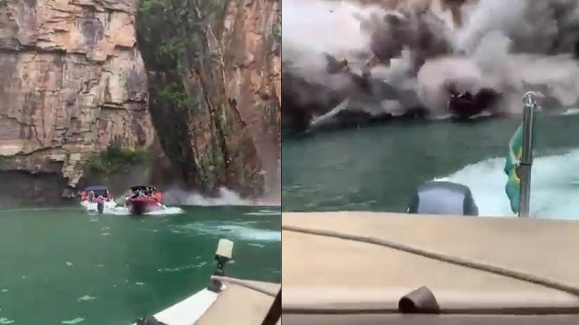 Cerca de las 5 de la tarde del sábado 8 de enero, un peñasco se derrumbó y cayó sobre tres barcos. De acuerdo con Romeu Zema, gobernador de este Minas Gerais, el gran pedazo de roca se desprendió en el lago Furnas en Capitólio, debido a las fuertes lluvias.