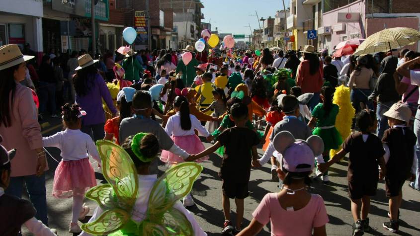 El desfile se caracterizó por ser uno de los más coloridos y concurridos, donde familias completas se dieron cita para presenciar el paso de niñas y niños de nivel preescolar, quienes lucieron disfraces inspirados en la naturaleza como flores, mariposas, leones, conejos y árboles, entre otros personajes.