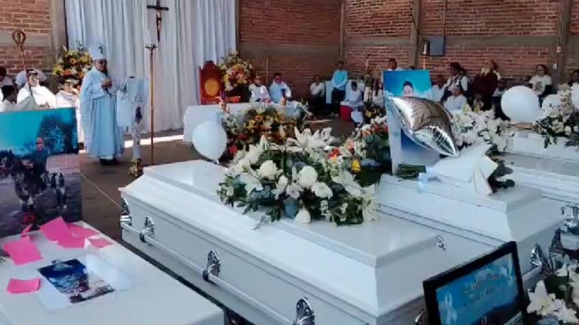 Decenas de personas, vestidas principalmente de blanco y azul, acompañaron los féretros hasta el templo de la comunidad. Ahí, el obispo de Irapuato, Enrique Díaz, encabezó una misa en honor a los jóvenes. En su mensaje, destacó que las familias no buscan venganza, pero sí claman por justicia.
