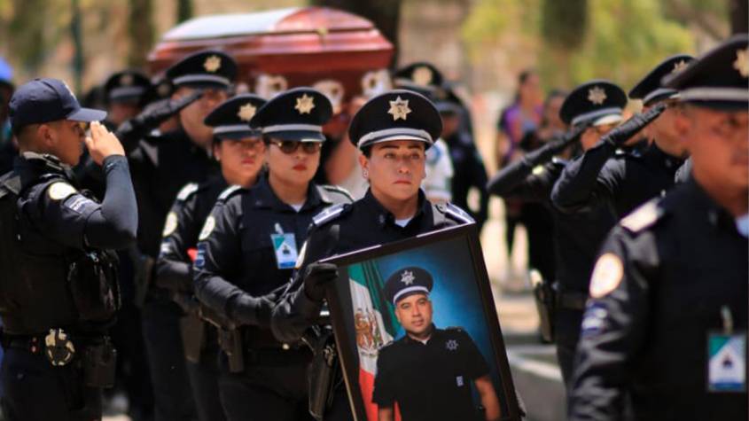 Los compañeros de la Secretaría de Seguridad, Prevención y Protección Ciudadana entregaron a la familia de Daniel Arévalo una bandera de México, la insignia policial y una fotografía, como símbolos de reconocimiento eterno a su labor y sacrificio.