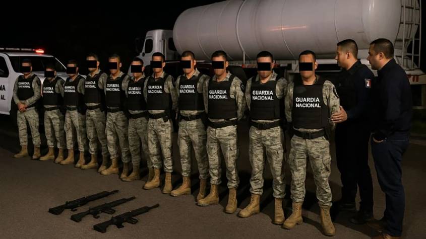Una operación sorpresa dejó al descubierto una presunta red de robo de combustible en la que estarían involucrados once integrantes activos de la Guardia Nacional. La detención ocurrió la noche del sábado 24 de mayo en la comunidad El Espejo, ubicada en el municipio de Apaseo el Alto.