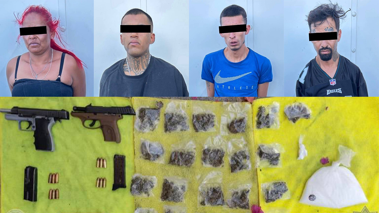 En un operativo de la Policía de León realizado en la colonia 10 de Mayo, fueron detenidas cuatro personas —tres hombres y una mujer— que portaban armas de fuego, cartuchos y droga.