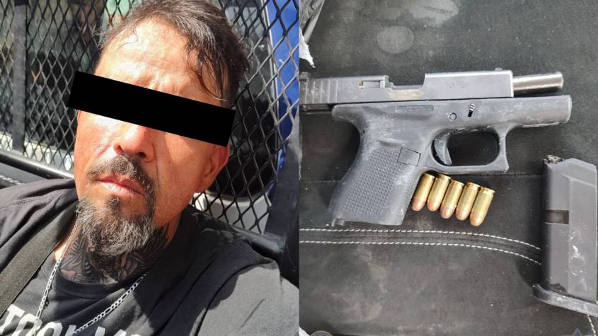 Al hacerle una revisión, los policías encontraron entre sus pertenencias una pistola tipo escuadra calibre .380 mm, con un cargador y cinco balas. El detenido fue identificado como Álvaro Noé “N”, quien ya había sido arrestado en seis ocasiones anteriores.