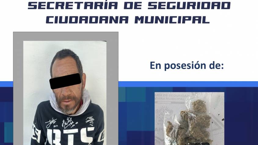 Tras localizarlo, los policías realizaron una revisión preventiva en la que hallaron la sustancia mencionada. El detenido fue identificado como Jaime “N”, de 44 años, quien registra 69 ingresos a los separos municipales por distintas faltas administrativas y delitos, como intoxicación en vía pública, agresiones verbales e insultos a la autoridad.