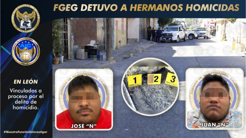 La Fiscalía General del Estado, presentó ante un Juez a dos hermanos originarios de Tabasco; acusados de acribillar despiadadamente a un hombre con disparos de arma de fuego. Los hechos ocurrieron en la colonia Los Olivos, el pasado 14 de octubre en León.