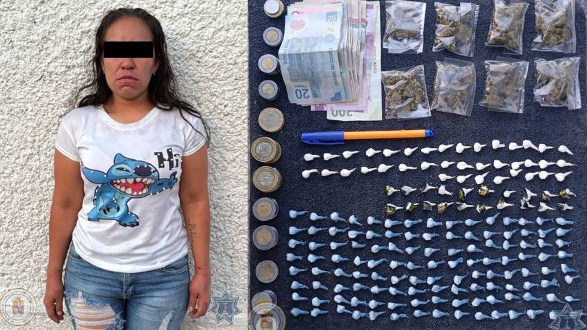 Durante un operativo de vigilancia en la avenida Miguel Alemán y calles cercanas, elementos de la Policía de León detuvieron a una mujer presuntamente dedicada a la distribución de drogas, a quien se le aseguraron más de 180 dosis de distintas sustancias y dinero en efectivo.