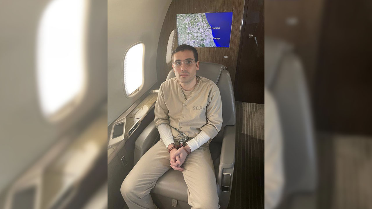 Derek Maltz, un oficial de la DEA (Administración de Control de Drogas), compartió una foto donde se muestra a Ovidio Guzmán López, el hijo de Joaquín «El Chapo» Guzmán, esposado y usando gafas mientras es extraditado a los Estados Unidos. En la imagen, Guzmán López está encadenado y esposado en un asiento de avión, con un mapa visible detrás de él.