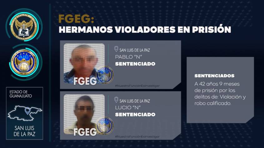 Dos hermanos han sido sentenciados por cargos de violación y robo. PABLO “N” suma una sentencia de 42 años y 9 meses a otra anterior de 12 años y 9 meses. LUCIO “N” participó con su hermano en una violación, ha sido sentenciado a 42 años con 9 meses.