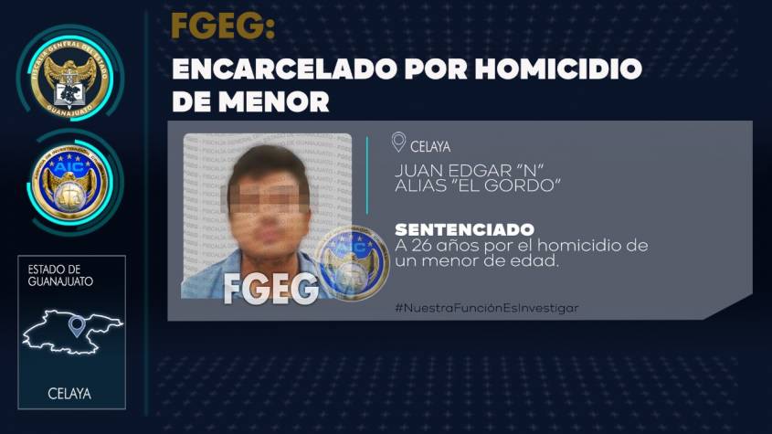 El «Gordo», un hombre de 30 años, asesinó a un menor adolescente, cuyo cuerpo fue a tirar a un canal de riego cercano a la calle Severo Castillo en la colonia Gobernadores, en Celaya. La policía encontró un cuerpo sin vida, maniatado y encobijado en un canal de riego en la colonia Gobernadores. La Fiscalía identificó el cadáver como el de un adolescente de 16 años que vivía en la colonia Valle Hermoso. Por el crimen, el responsable del brutal asesinato, fue sentenciado a 26 años de cárcel, sin beneficios de ninguna especie.La historia del homicidio que conmocionó a los celayenses tiene que ver con el adolescente apodado “El Chicles”, quien llegó en compañía de dos personas a un domicilio en la calle Colibrí en la colonia Las Aves, el pasado 28 de abril de 2020 a donde llegó el imputado, JUAN EDGAR “N”, alias “El Gordo”.Se estableció en el curso de las investigaciones, que existía una relación de compraventa de la droga conocida como “cristal” entre los presentes, además de ser un lugar de reunión para el propio consumo del enervante. Por lo anterior, hubo consumo de droga y bebidas alcohólicas hasta cerca de la madrugada, cuando el estupefaciente se terminó. Cerca de las 2:00 de la mañana, el adolescente dijo que se retiraba, y es en ese momento, que el imputado le exige pagar una deuda pendiente y entre insultos y amenazas, el adulto se abalanza contra él y lo golpea en la cabeza, golpiza a la cual se suma uno de los cómplices del “Gordo”.Al final, ató de pies y manos a su víctima y lo privó de la vida con una bolsa de plástico en la cabeza y una camisa de color negro que amarró en su cuello. Lo envolvió en una cobija color guinda y lo fue a tirar a un canal de riego cercano a la calle Severo Castillo en la colonia Gobernadores.El reporte forense confirmó que la causa de muerte fue asfixia mecánica en su movilidad de estrangulamiento.En la investigación de este homicidio, la Fiscalía General del Estado realizó un cateo en el domicilio de la colonia Las Aves, en donde encontró vestigios del asesinato, entre ellos, la cinta adhesiva tipo canela que aún presentaba manchas de sangre. Una vez que se confirmó la intervención de JUAN EDGAR “N” en el homicidio, se obtuvo una orden de aprehensión que fue cumplimentada el 8 de mayo de 2020 por el delito de homicidio en agravio del menor adolescente.En la audiencia de juicio oral desarrollada en esta fecha, “El Gordo” fue presentado en el Juzgado de Oralidad en esta ciudad y en una audiencia celebrada de manera virtual, fue sentenciado a 26 años de prisión, reparación del daño, pago de gastos funerarios, y reparación del daño moral, en favor de las víctimas indirectas.