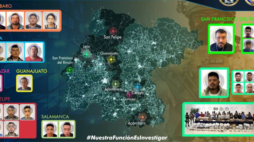 La Fiscalía de Guanajuato detuvo a 43 inculpados que han sido procesados penalmente en el lapso del 17 al 24 de octubre, bajo cargos de homicidio, homicidio en grado de tentativa, secuestro, homicidio en grado de tentativa en agravio de servidores públicos, desaparición cometida por particulares en grado de tentativa, lesiones y robo calificado.