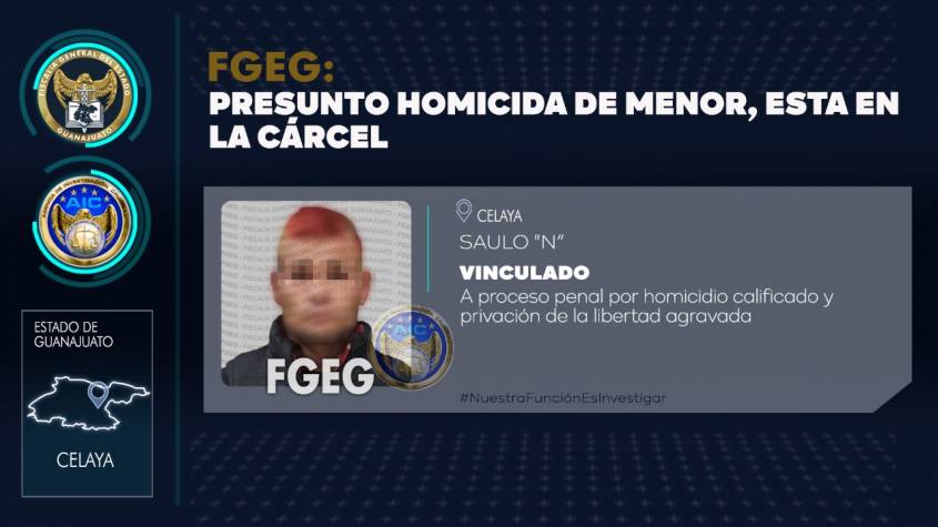 SAULO “N” se encuentra en prisión preventiva oficiosa en calidad de presunto autor material del homicidio del menor, por el tiempo que dure el proceso.