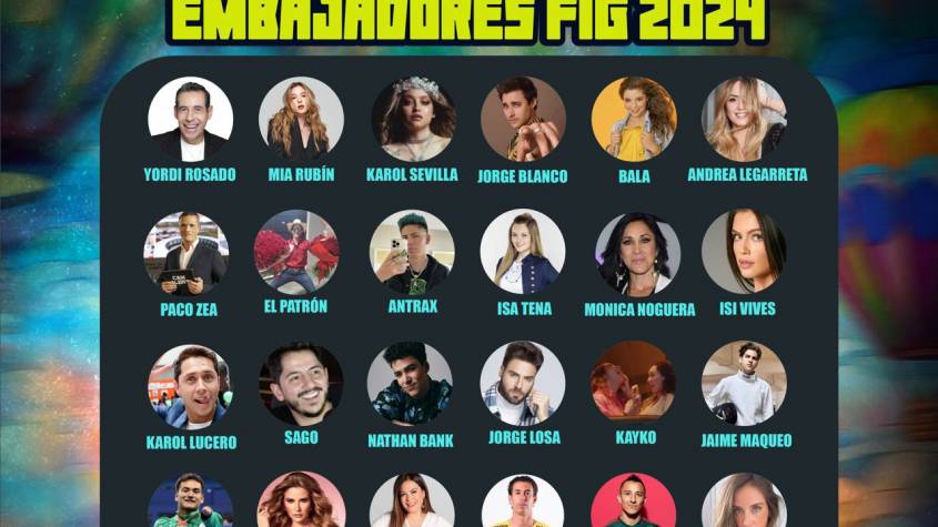 Entre ellos destacan Yordi Rosado y Mía Rubín, quienes serán los conductores oficiales de esta edición; Antrax como host digital; y Jorge Blanco, La Bala y Nathan Bank, quienes además ofrecerán presentaciones musicales en el FIG MAIN STAGE la mañana del 16 y 17 de noviembre. También se suma Karol Sevilla, destacada actriz y cantante mexicana que ha brillado a nivel internacional, reforzando el espíritu multicultural y vibrante que caracteriza al Festival de Festivales.
