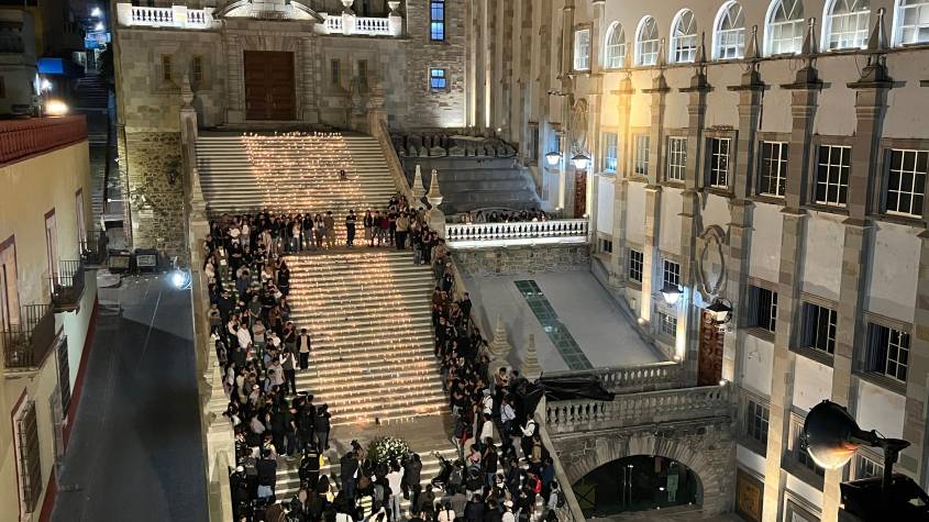 Los estudiantes llenaron de veladoras las escalinatas del edificio central de la máxima casa de estudios del estado de Guanajuato. Por turnos realizaron guarias en el altar y guardaron un minuto de silencio y pidieron por la salir de sus otros 10 compañeros que resultaron lesionados en el accidente.