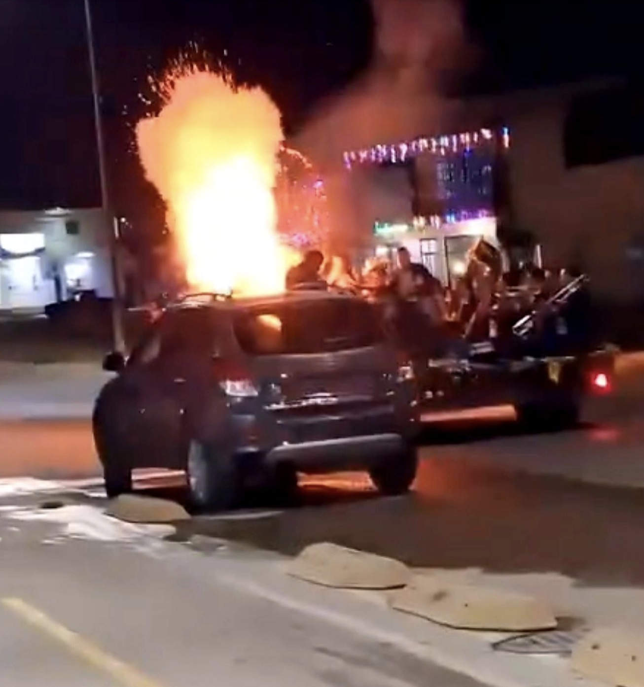 El estallido alcanzó a personas que viajaban en el remolque y a quienes caminaban cerca, lo que provocó momentos de pánico entre los asistentes. En el lugar fueron atendidas seis personas: tres presentaban quemaduras consideradas graves y tuvieron que ser trasladadas a hospitales, mientras que las otras tres recibieron atención por lesiones menores en el sitio.