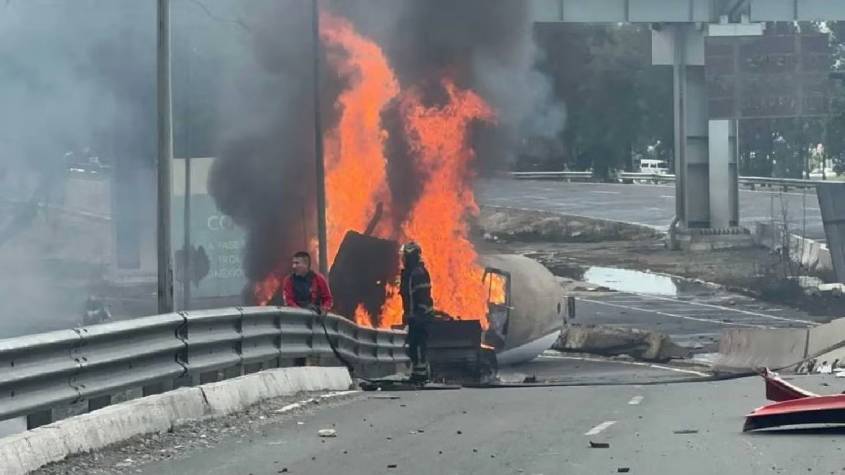 Fallece chofer de la pipa que se volteó y explotó en Iztapalapa