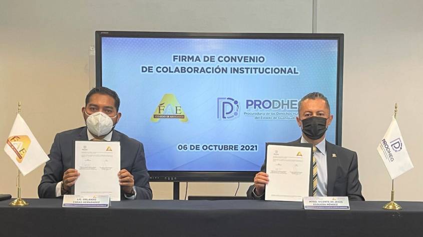 La Federación de Abogados Especialistas en Juicios Orales (FAE A.C.) y la Procuraduría de los Derechos Humanos del Estado de Guanajuato PRODHEG, firmaron un convenio de colaboración para capacitación en materia de derechos humanos.