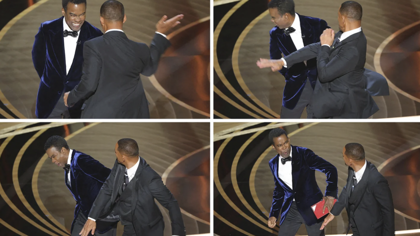 Jada Pinkett Smith, lucía visiblemente molesta luego del comentario de Rock, justo en ese momento Will se percató de la molestia que esto había causado a su esposa, por lo que subió al escenario y abofeteó al comediante, ante la sorpresa de todos los asistentes y del público. Tras la agresión, Rock sólo pudo decir: “Oh, uh”.