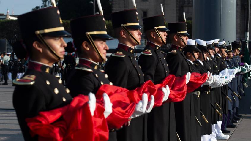 18 mil 445 integrantes de la Guardia Nacional y de las tres Fuerzas Armadas - Un guardia honorario